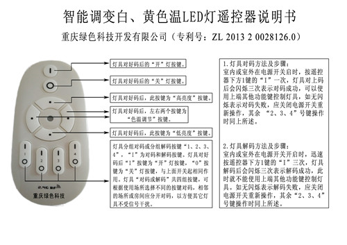 The product has the following unique features: two groups of light source, built-in smart chip, intelligent remote control, light source, alternating parallel work; in spring, autumn and winter, the light color temperature is adjustable for warm white 3500K; summer, light color temperature is adjustable for white light 5500K. High color rendering index, light on objects, high definition, high light efficiency. This new generation of LED bulb, a lamp can be more than ordinary light temperature LED lamp use, the performance is more expensive, can improve the light efficiency of 10%, prolong the service life of lamps more than doubled. Intelligent color matching and dimming, more comfortable and energy-saving. Is the national patent technology manufacturing products. Intelligent dimming by LED energy-saving lamps need remote transformation temperature (Patent No.: 201320028126), convenient disassembly and good heat dissipation of the LED energy saving small lamps (Patent No.: 201320020770.3), won the Chongqing municipal industry new technology certification (certificate number: 01, 02).